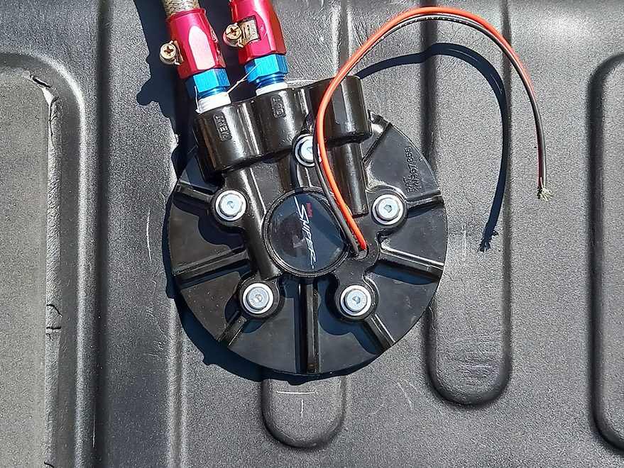 When i started the proper restoration and upgrade of the A Series, there were not too many options for aftermarket in-tank pumps for the full fuel injection and as I didn’t want to go the whole swirl pot in the boot option, I opted for an all-in-one pump and swirl pot from a Punto, which worked great but was made for a much deeper tanks than the A Series and was quite a bulky plastic unit and as the pump was too tall I ended up having a flange welded to the tank and cutting a hole in the boot floor with the unit sticking up inside.